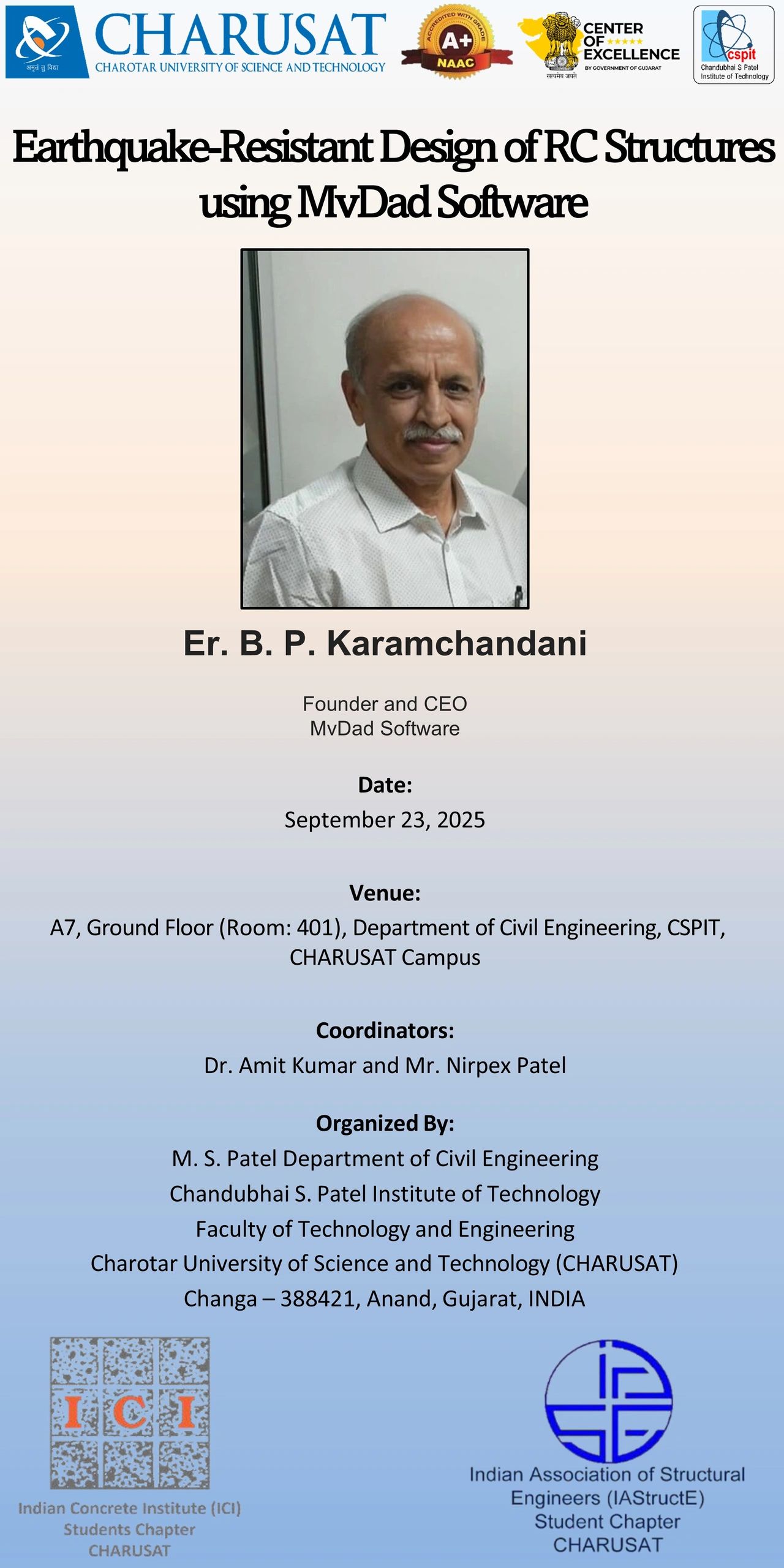 Venue: A7, Ground Floor (Room: 401), Department of Civil Engineering, CSPIT, CHARUSAT Campus