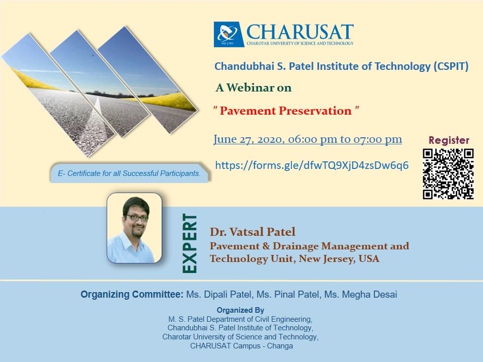Free webinar on “Why Civil Engineering?” is organized by M. S. Patel Department of Civil Engineering, CSPIT, CHARUSAT, Changa.